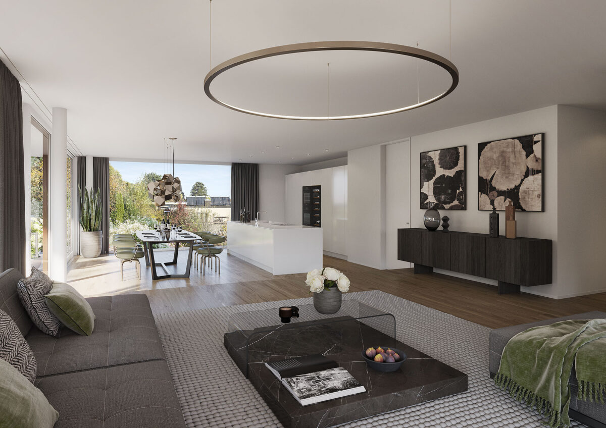 An dieser einmaligen Lage entstehen drei luxuriöse 4.5-Zimmer-Eigentumswohnungen mit je rund 170m2 Wohnfläche. Die repräsentative Wohnatmosphäre gewährt viel Spielraum für persönliche Gestaltungswünsche und individuelle Einrichtungsvorlieben. Sie haben die Möglichkeit, den Innenausbau mitzubestimmen und hier Ihre Wohlfühloase zu schaffen.