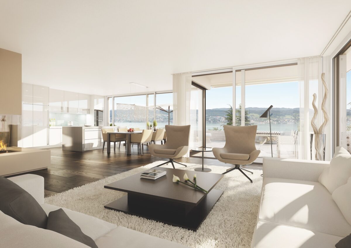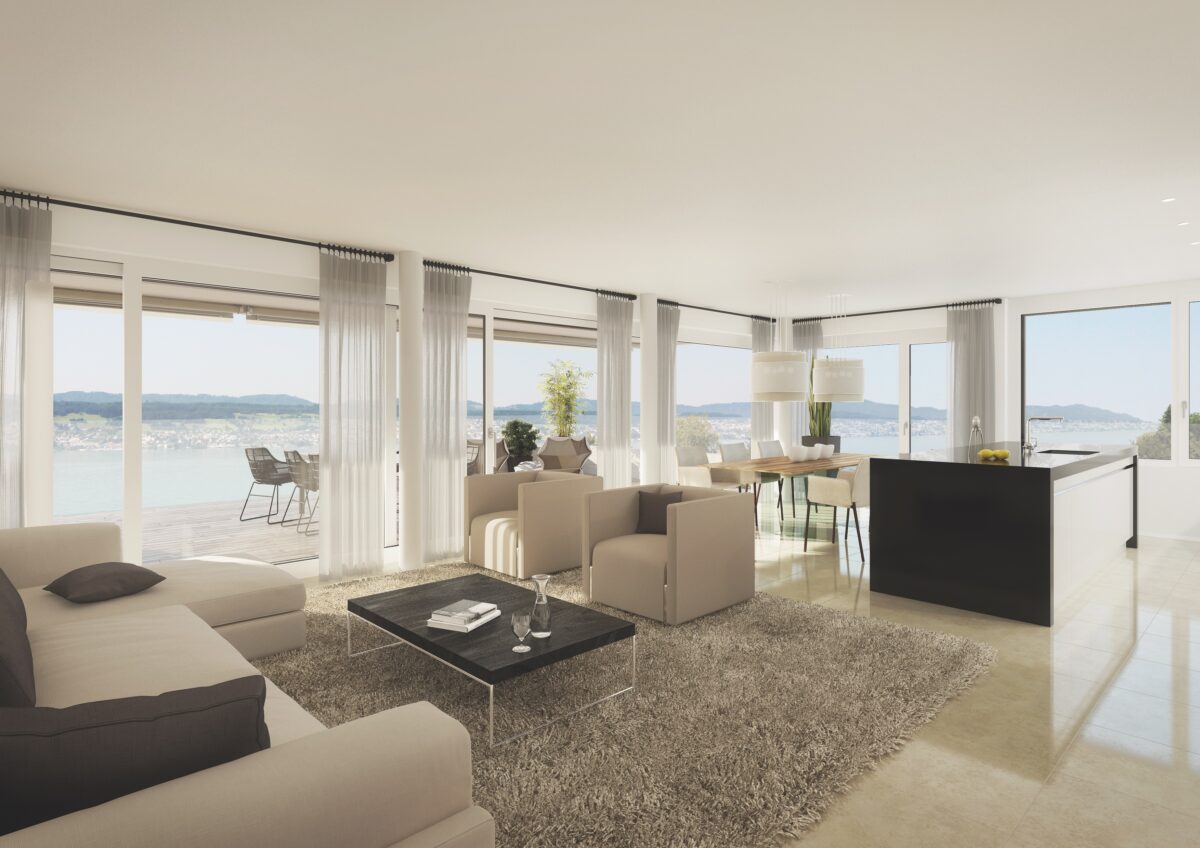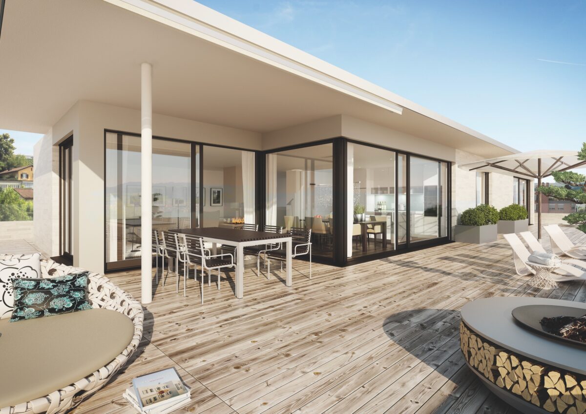 Die zwei architektonisch anspruchsvollen Baukörper des Projektes „Seegarten“ stehen an prominenter Lage – gegenüber das private Seegrundstück. Jede der 22 grosszügig konzipierten Wohnungen profitiert von einer einzigartigen Fernsicht und optimalen Besonnung. Das Wohnungsangebot besteht aus 3,5 bis 5,5 Zimmer Wohnungen mit sehr grosszügigen Terrassen oder Gartensitzplätzen mit Südausrichtung. Das dazugehörige private Seegrundstück ist neben dem ENEA-Garten ein weiteres Highlight dieser Überbauung.