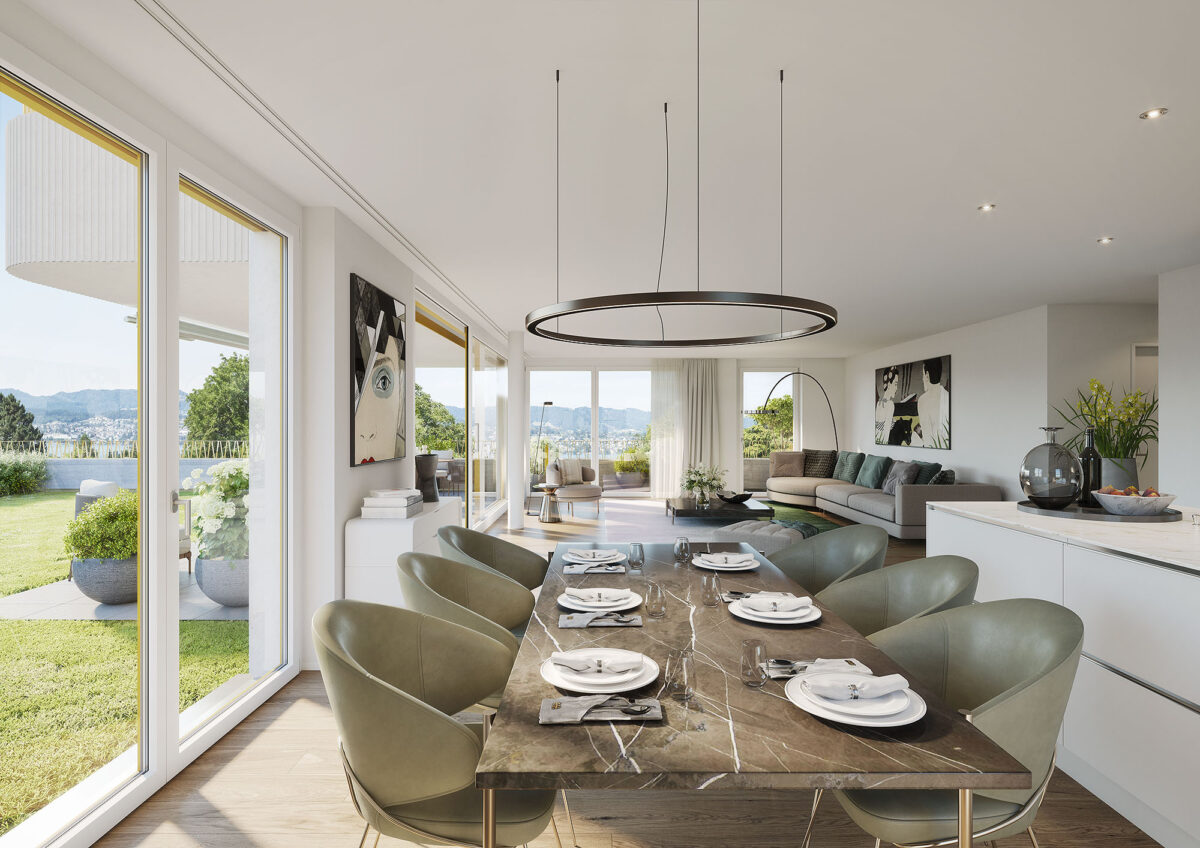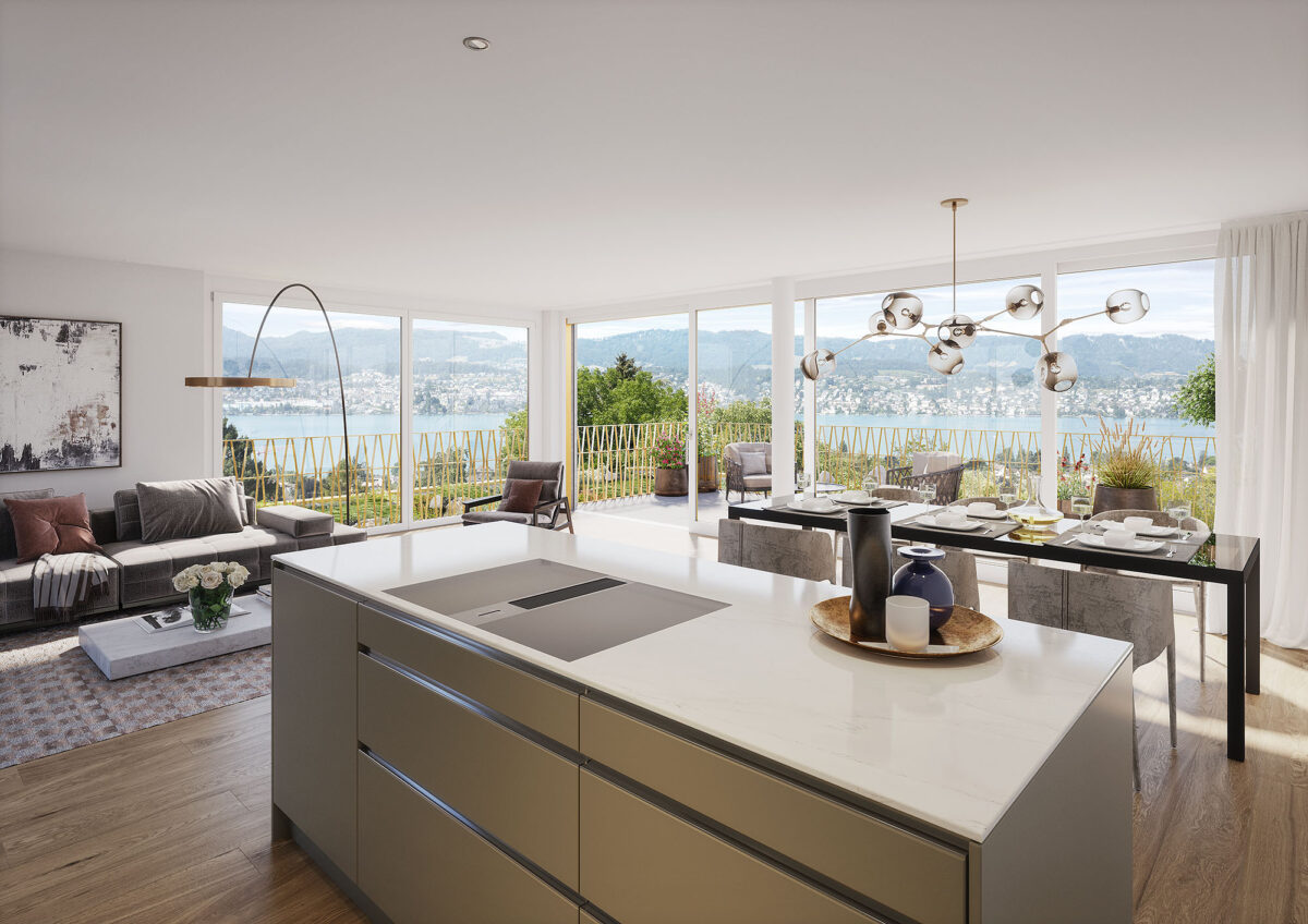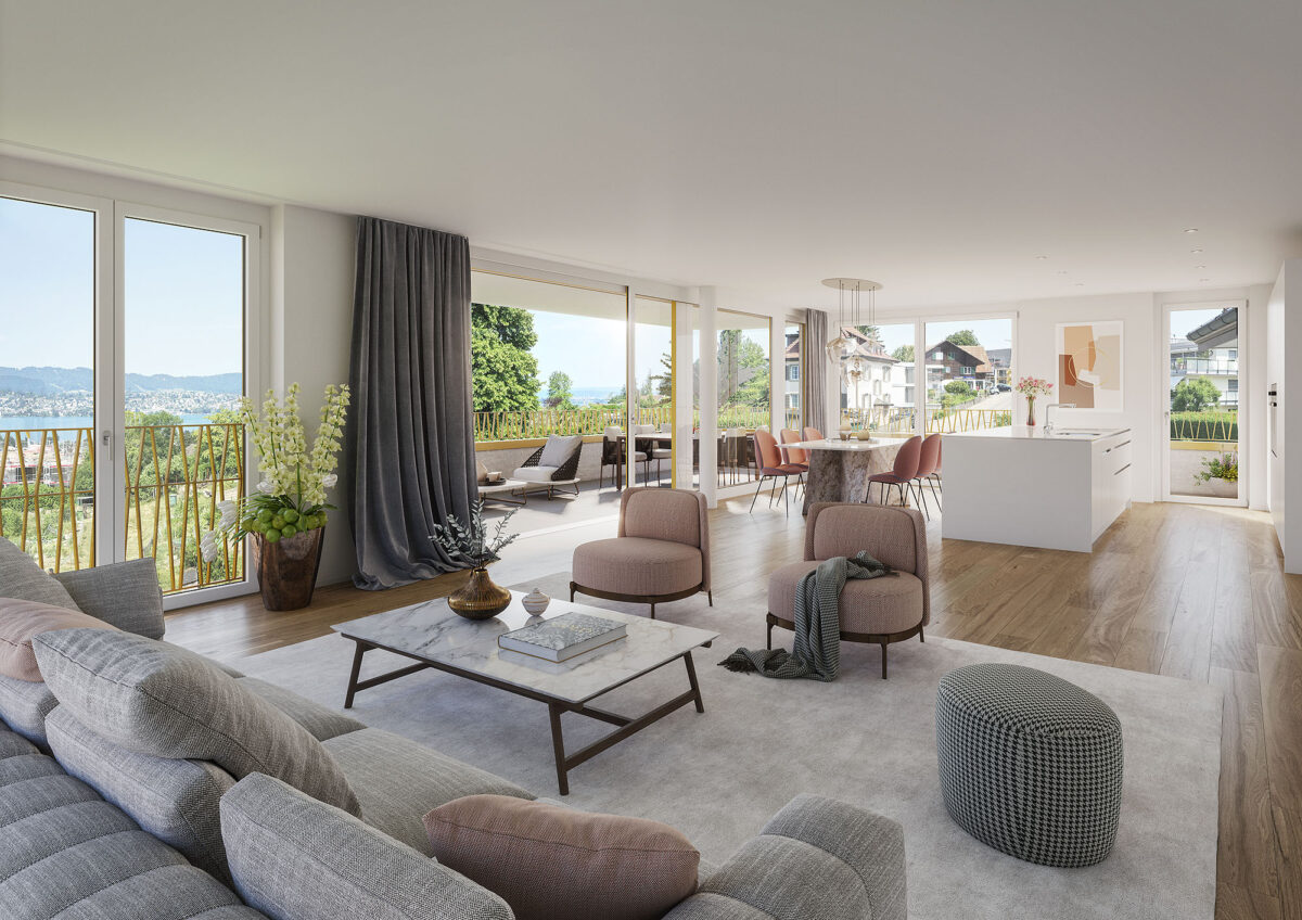 An bester Lage in Küsnacht am Zürichsee entsteht der Neubau AQA mit drei luxuriösen Eigentumswohnungen. Im EG und OG entsteht je eine 4,5 Zimmerwohnung, im Attikageschoss entsteht eine 3,5 Zimmerwohnung. Die Wohnungen bieten Wohn- und Lebensqualität auf höchstem Niveau. Das Projekt überzeugt durch sein modernes Äusseres mit filigraner Fassadengestaltung, grosszügigen Grundrissen und hohem Ausbaustandard. Der Blick auf den Zürichsee rundet die ausserordentliche Lage perfekt ab.
