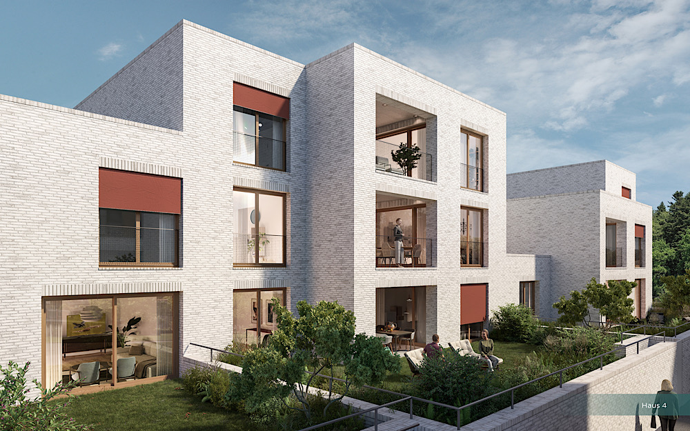 Der Schlüssel zum perfekten Zusammenspiel sind die leichten Verschiebungen der Grundmauern, welche zu einer optischen Auflockerung wie auch zu kleinen nutzbaren Freiräumen zwischen den Häusern führen. Die unterschiedlichen Höhenlagen der Gebäudekomplexe helfen mit, dass die Eigentümerinnen und Eigentümer gleichermassen von Privatsphäre und Ausblick profitieren. Loggien und Gärten unterstreichen dieses Ziel.
