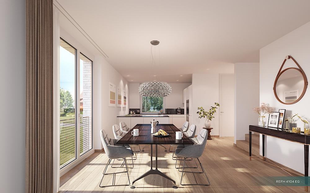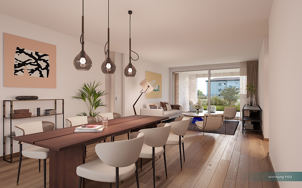 Der „Guggeien Park“ besticht mit einem vielfältigen Wohnangebot. Während sich die Grundrisse Ihren Bedürfnissen anpassen, fördert die versetzte Anordnung grüne Oasen zutage. Was von aussen wie eine Einheit aus vier Mehrfamilienhäuser aussieht, ist von innen eine geschickte Struktur aus 2.5- bis 5.5 Zimmer Wohnungen sowie 4.5- oder 5.5-Zimmer Reihenhäuser.
