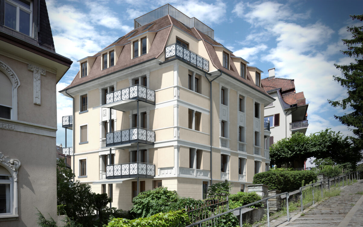 Am Ekkehard-Steig 3 zu wohnen bedeutet, ganz nah dran zu sein an den spannenden Hot Spots der pulsierenden Stadt Zürich. In der sanierten Jugendstil-Liegenschaft befinden sich 10 Wohnungen mit 2,5 bis 4 Zimmern mit hochwertigen Materialien und einer Haustechnik auf dem neuesten Stand. Bei der Sanierung wurden die wesentlichen Formen und somit der Charakter des ehrwürdigen Gebäudes erhalten.